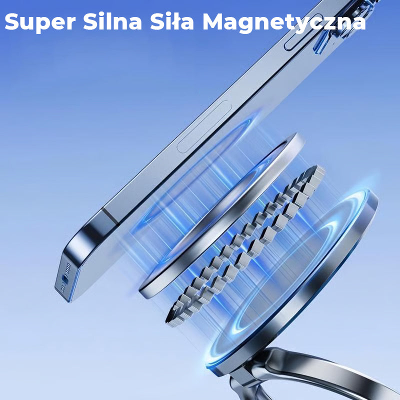 MOCNIEJSZY CHWYT MAGNETYCZNY – Ten próżniowo magnetyczny uchwyt na telefon posiada precyzyjnie zaprojektowany pierścień z dwuwarstwowym zestawem wysokiej jakości magnesów, oferując silniejsze przyciąganie niż tradycyjne uchwyty magnetyczne, bez drgań. Magnesy idealnie dopasowują się do wbudowanych cewek magnetycznych telefonu, zapewniając natychmiastowe i stabilne przymocowanie. Wytrzymuje ostre hamowanie, gwałtowne skręty i nierówności — telefon pozostaje na miejscu w każdych warunkach. Dodatkowo inteligentna konstrukcja pola magnetycznego gwarantuje brak zakłóceń dla GPS lub ładowania bezprzewodowego.
