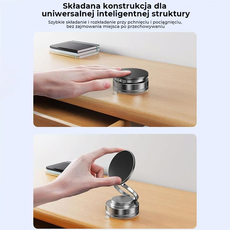 MAGNETYCZNY UCHWYT Z PRZYSSAWKĄ – Ten dwustronny magnetyczny uchwyt na telefon łączy inteligentne próżniowe ssanie z magnetycznym przyciąganiem. Może być używany na metalowych powierzchniach, szkle, ścianach, lustrach i ekranach samochodowych, upraszczając codzienne czynności.