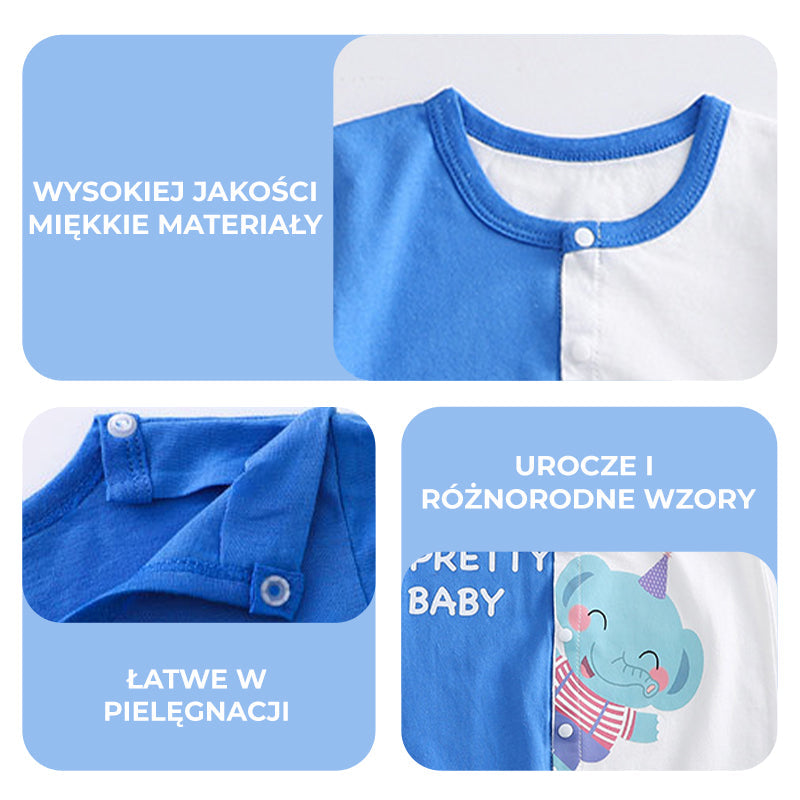 WYSOKIEJ JAKOŚCI MIĘKKIE MATERIAŁY: Wykonane z wysokiej jakości, oddychających tkanin, które zapewniają maksymalny komfort dla Twojego maluszka. Delikatny materiał zapobiega podrażnieniom, co sprawia, że jest idealny dla wrażliwej skóry niemowląt. Zaprojektowane, aby utrzymać Twoje dziecko chłodne i wygodne przez cały dzień, niezależnie od tego, czy bawi się, czy odpoczywa.